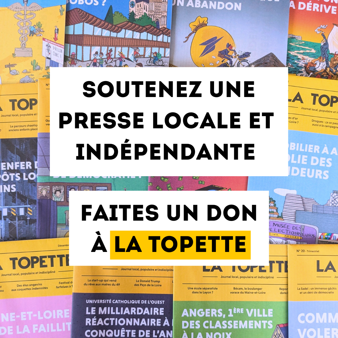 Si vous aussi êtes attaché à l’existence d’une presse réellement indépendante et sans concession en Anjou, et que vous en avez les moyens, La Topette a besoin de vous : faites un don (défiscalisable à hauteur de 66%) et soutenez une information locale, populaire et indisciplinée !
